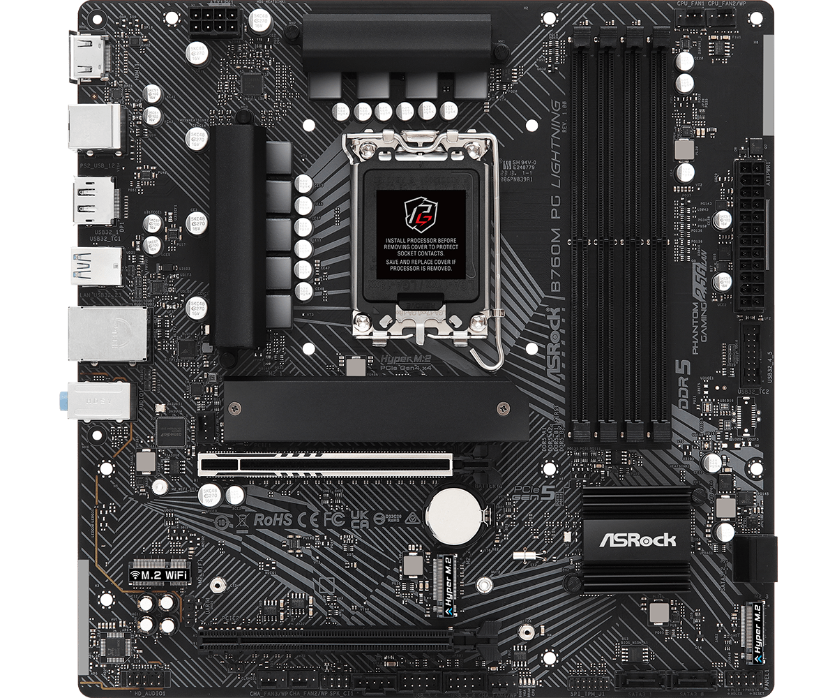 PLACA MADRE ASROCK B760M PG LIGHTNING: ¡EL PODER NO TIENE QUE OCUPAR MUCHO ESPACIO! SU COMBINACIÓN DE RENDIMIENTO ROBUSTO, CAPACIDAD DE EXPANSIÓN Y DISEÑO COMPACTO LA CONVIERTEN EN UNA INVERSIÓN INTELIGENTE PARA CUALQUIER PROFESIONAL QUE BUSQUE UN RENDIMIENTO EXCEPCIONAL EN SU COMPUTADORA SIN SACRIFICAR ESPACIO. ¿ESTÁS LISTO PARA OPTIMIZAR TU ESPACIO DE TRABAJO SIN COMPROMISOS?