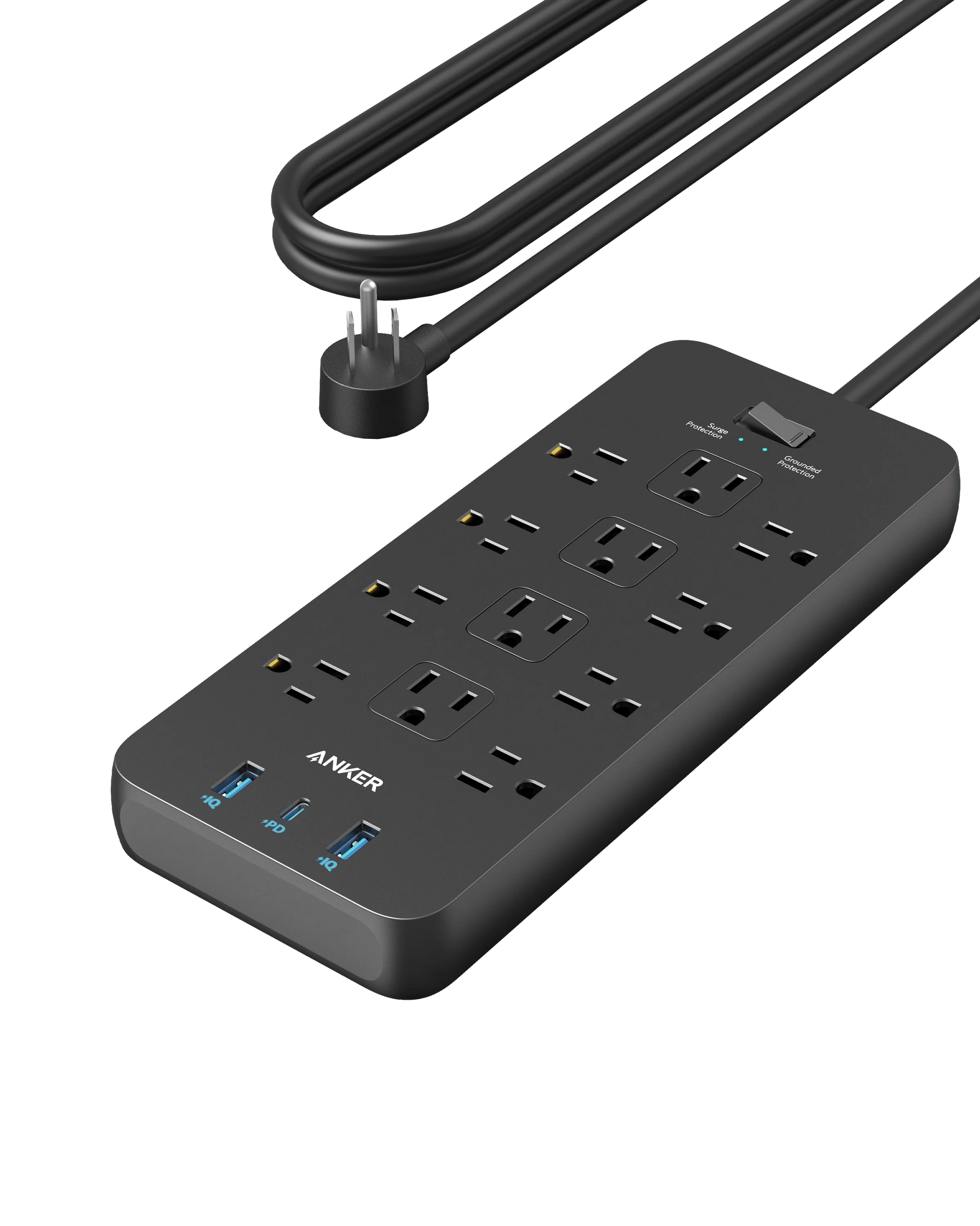 La Regleta Supresora de Picos Anker 351 es una central de energía para tu computadora y todos tus gadgets. Cuenta con 12 tomas de corriente AC, permitiéndote conectar una gran cantidad de aparatos, desde tu PC y monitores hasta impresoras y lámparas. Además, integra 1 puerto USB-C y 2 puertos USB-A para cargar tus dispositivos móviles.